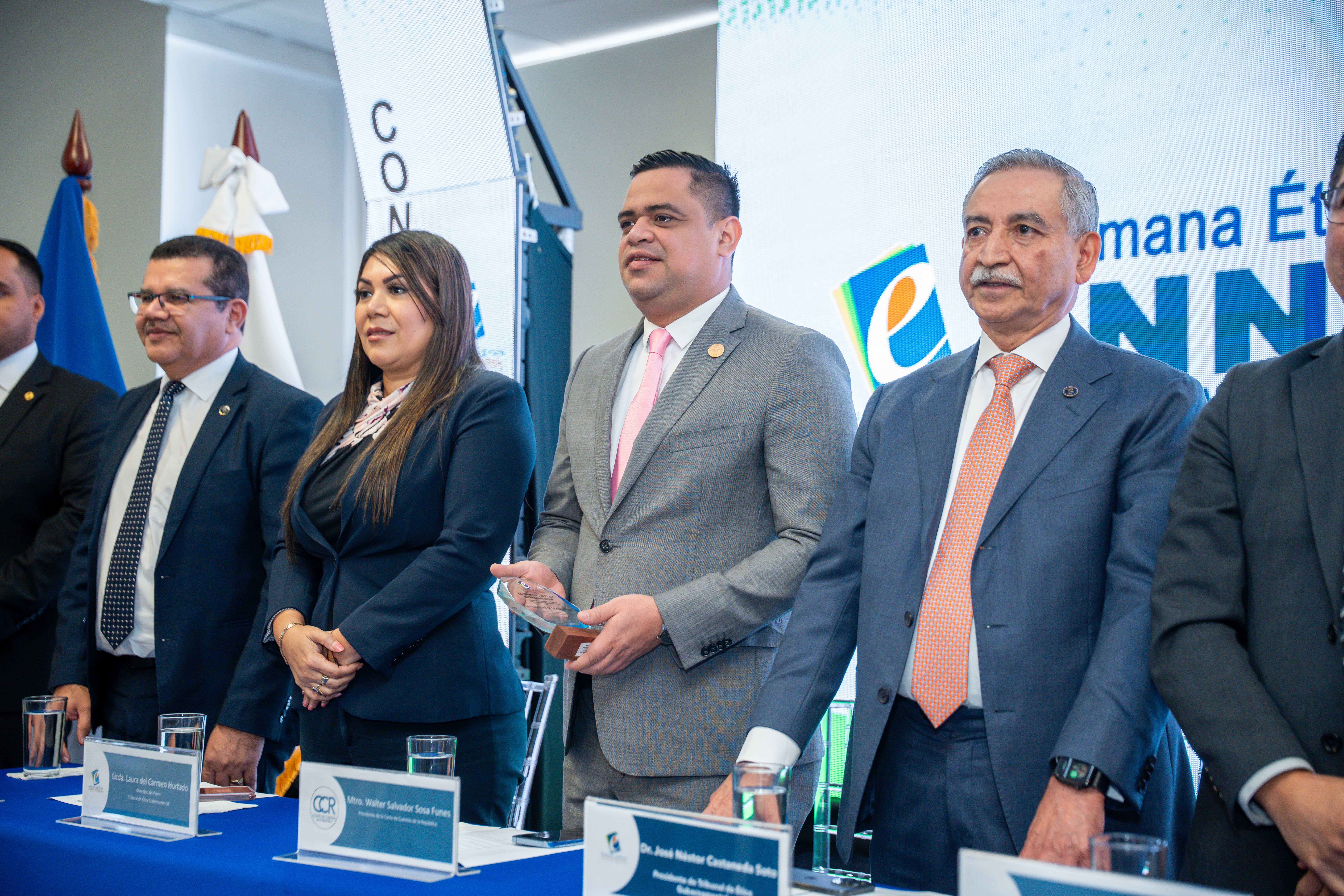 En dicho evento, el TEG hizo entrega del premio “Constructores de la Ética pública 2025” a la Comisión de Ética Gubernamental de la Corte de Cuentas de la República.
