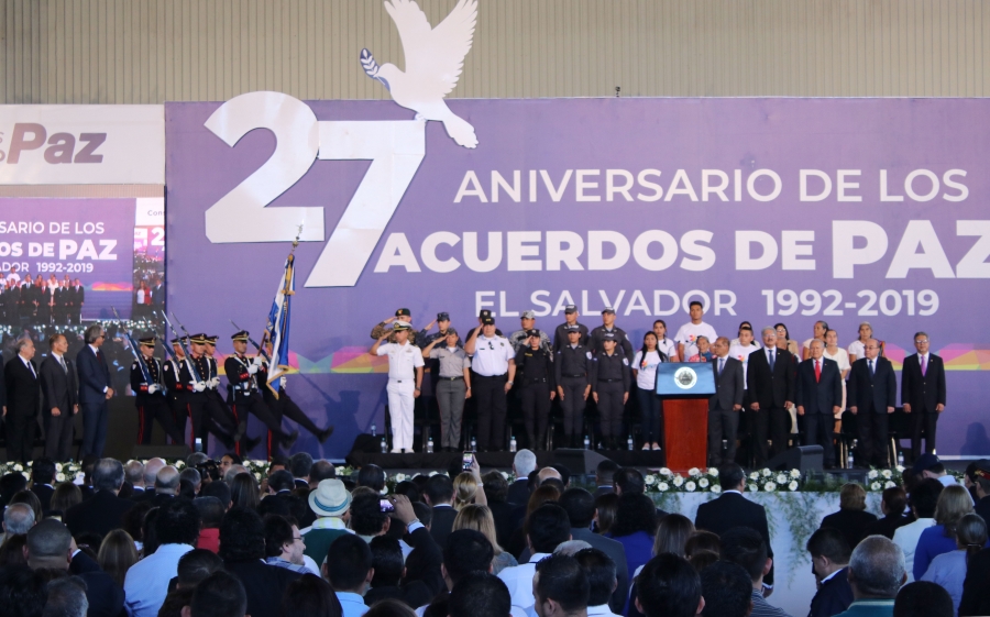 El evento fue inaugurado por el Presidente de la República, Prof. Salvador Sánchez Cerén, quien fue uno de los firmantes de los Acuerdos de Paz. El jefe de Estado rememoró: "El proceso democrático vivido desde la firma de los Acuerdos de Paz que ha permitido importantes avances en la educación, la cultura, la salud, la seguridad, las pensiones, la transparencia, los derechos humanos, la revitalización de la caficultura y la protección del medio ambiente, entre otros avances".