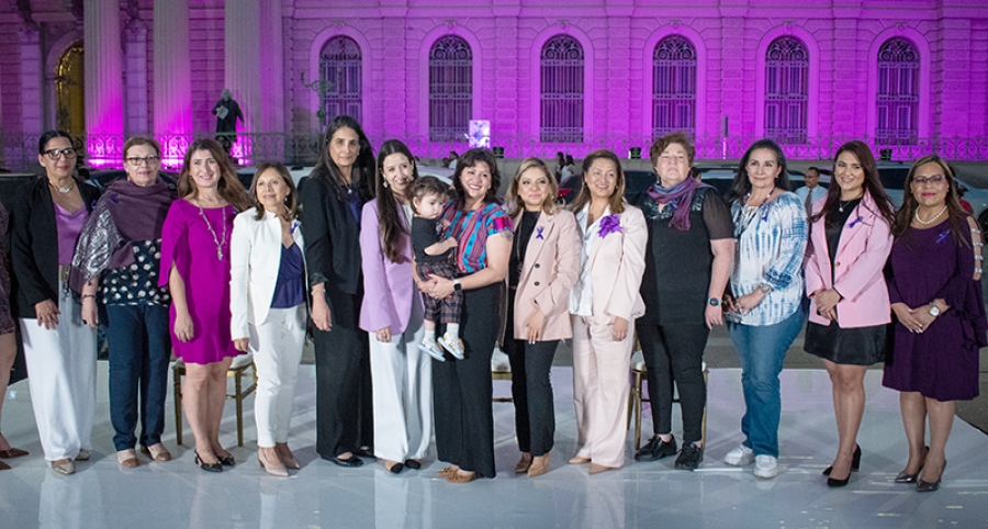 La Primera Magistrada, María del Carmen Martínez Barahona, participó en el acto conmemorativo del Día Internacional de la Mujer, organizado por ONU Mujeres y el Grupo de Embajadoras acreditadas en El Salvador, el cual incluyó la iluminación del Palacio Nacional con el color morado que se vincula a la promoción de los derechos de las mujeres.
