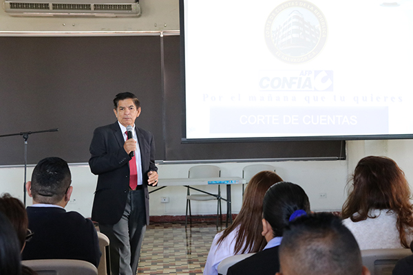 Más de cincuenta servidores del Área Administrativa, Auditoría y Jurisdiccional de la Corte de Cuentas conocieron sobre ‘’Sistema Previsional ‘’por parte del personal de AFP CONFIA’’, que tuvo lugar el 22 de enero en el Área de usos múltiples de la institución, en jornada de cuatro horas.