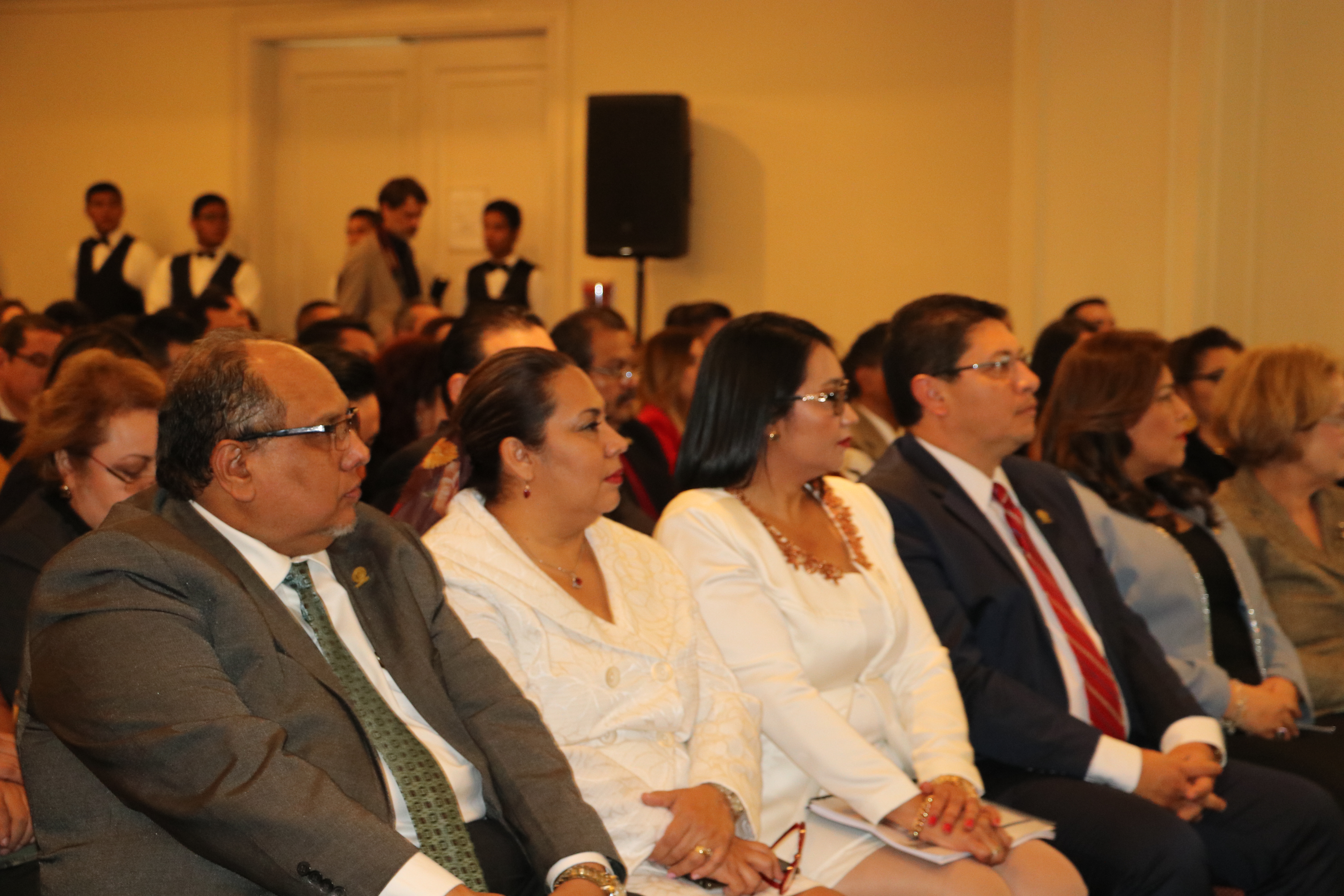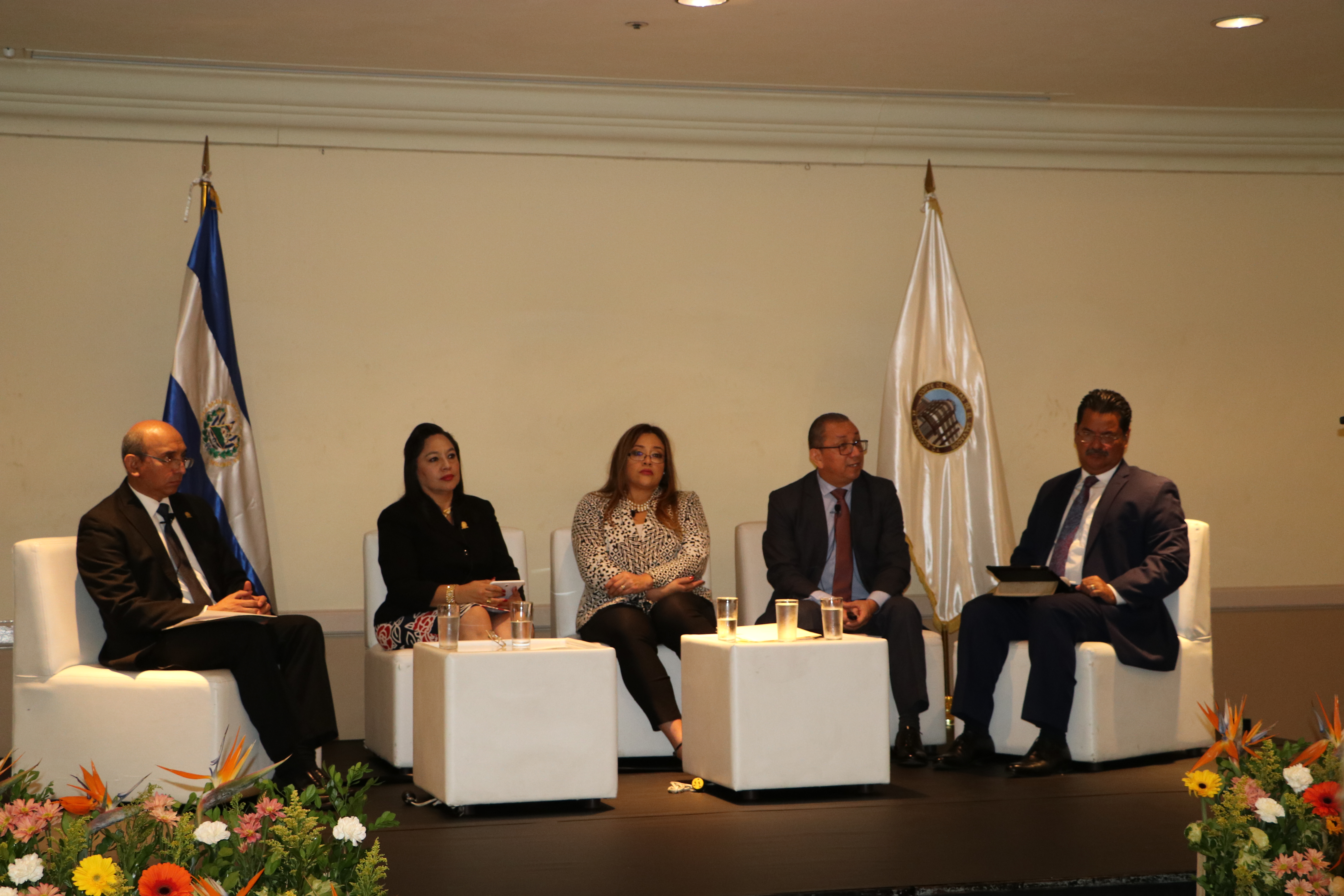 Estuvieron en la mesa de honor la Presidente de la Corte de Cuentas de la República, Licda. Carmen Elena Rivas Landaverde; el Lic. Joaquín Alberto Montano Ocho, Director General de Contabilidad Gubernamental y los docentes, licenciados Elsa Marina Morán Pineda, Juan José Torres Mejía y Óscar Armando Beltrán, del Ministerio de Hacienda.