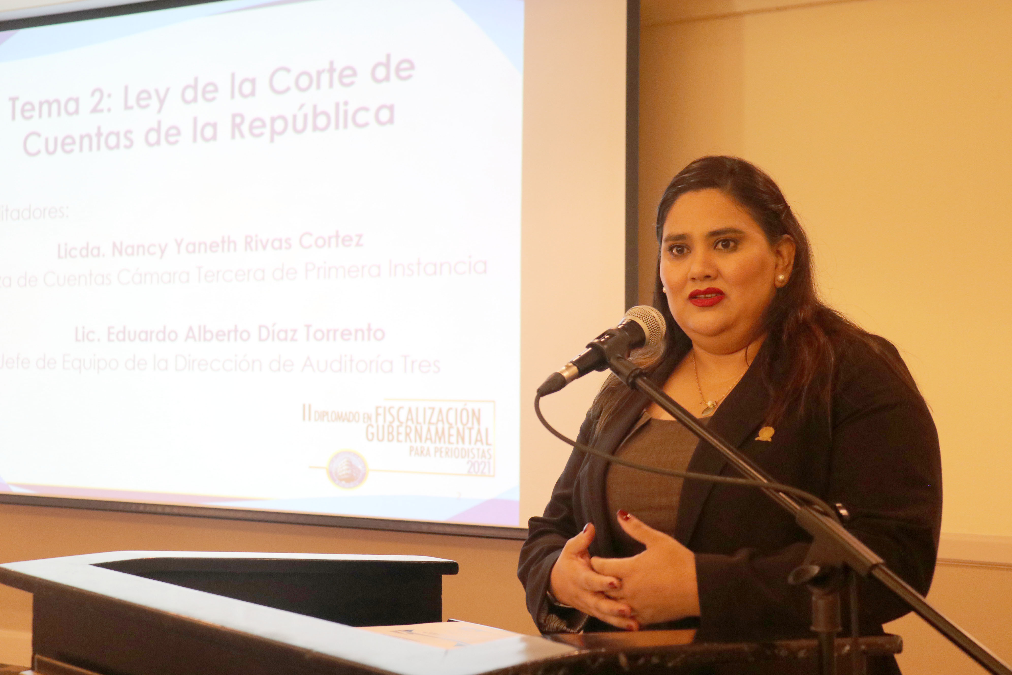 En esta ocasión, ese tema fue desarrollado por la licenciada Nancy Yaneth Rivas Cortez, jueza de cuentas interina de la Cámara Tercera de Primera Instancia, y por el licenciado, Eduardo Alberto Díaz Torrento, jefe de equipo de la Dirección de Auditoría Tres.