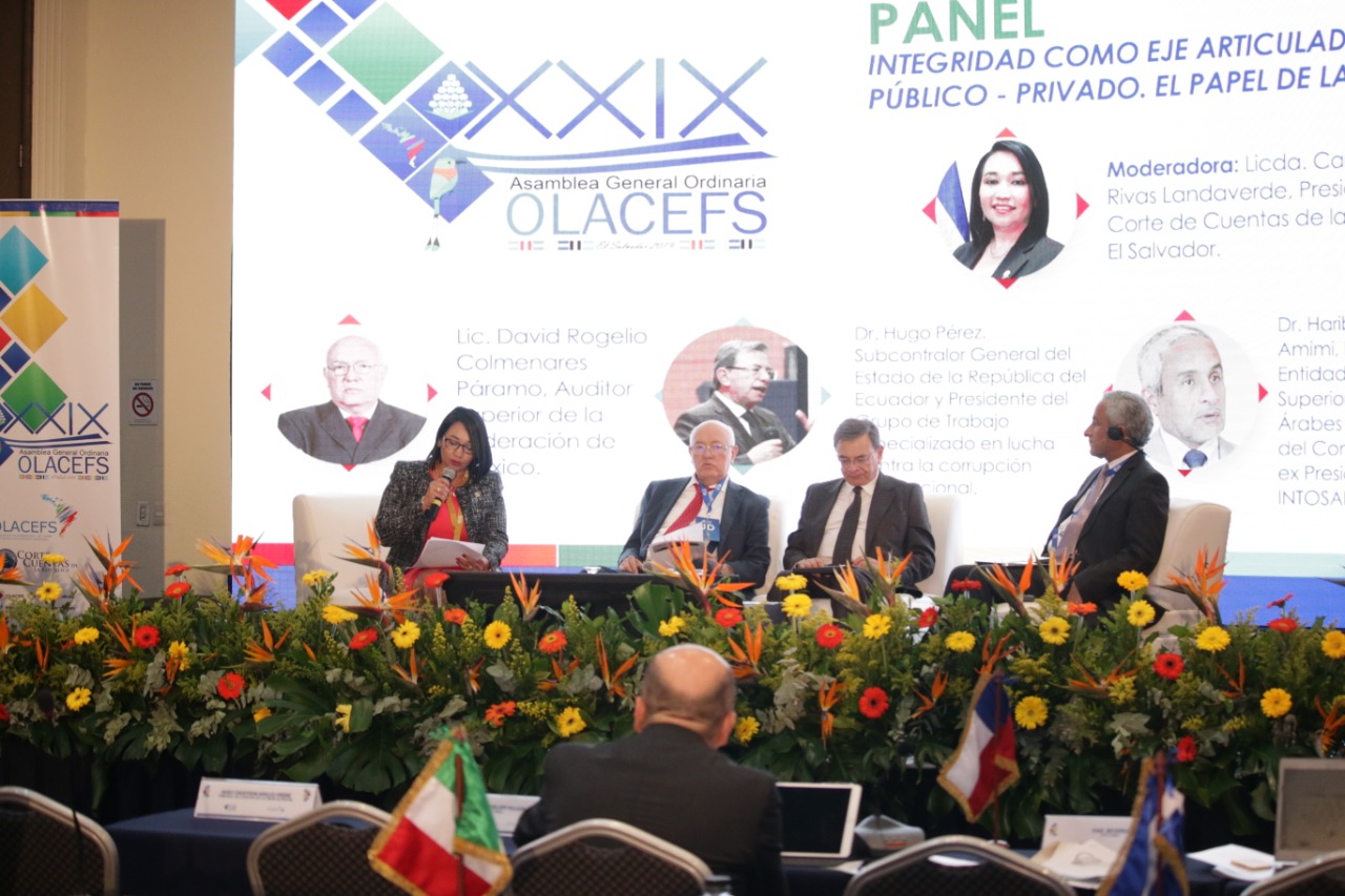 Por su parte, la Presidente de la Corte de Cuentas de la República puntualizó lo siguiente: “Exhorto a los participantes a aprovechar al máximo los conocimientos a exponerse en este panel y para que sean replicados dentro de las Entidades Fiscalizadoras Superiores presentes, esperando que los mayores beneficios que puedan generarse en materia de transparencia e integridad pública impacten positivamente en la ciudadanía, por ser la persona humana el eje principal de las actuaciones de los Estados tal como lo establece la Agenda Mundial 2030 y los objetivos de Desarrollo Sostenible”.