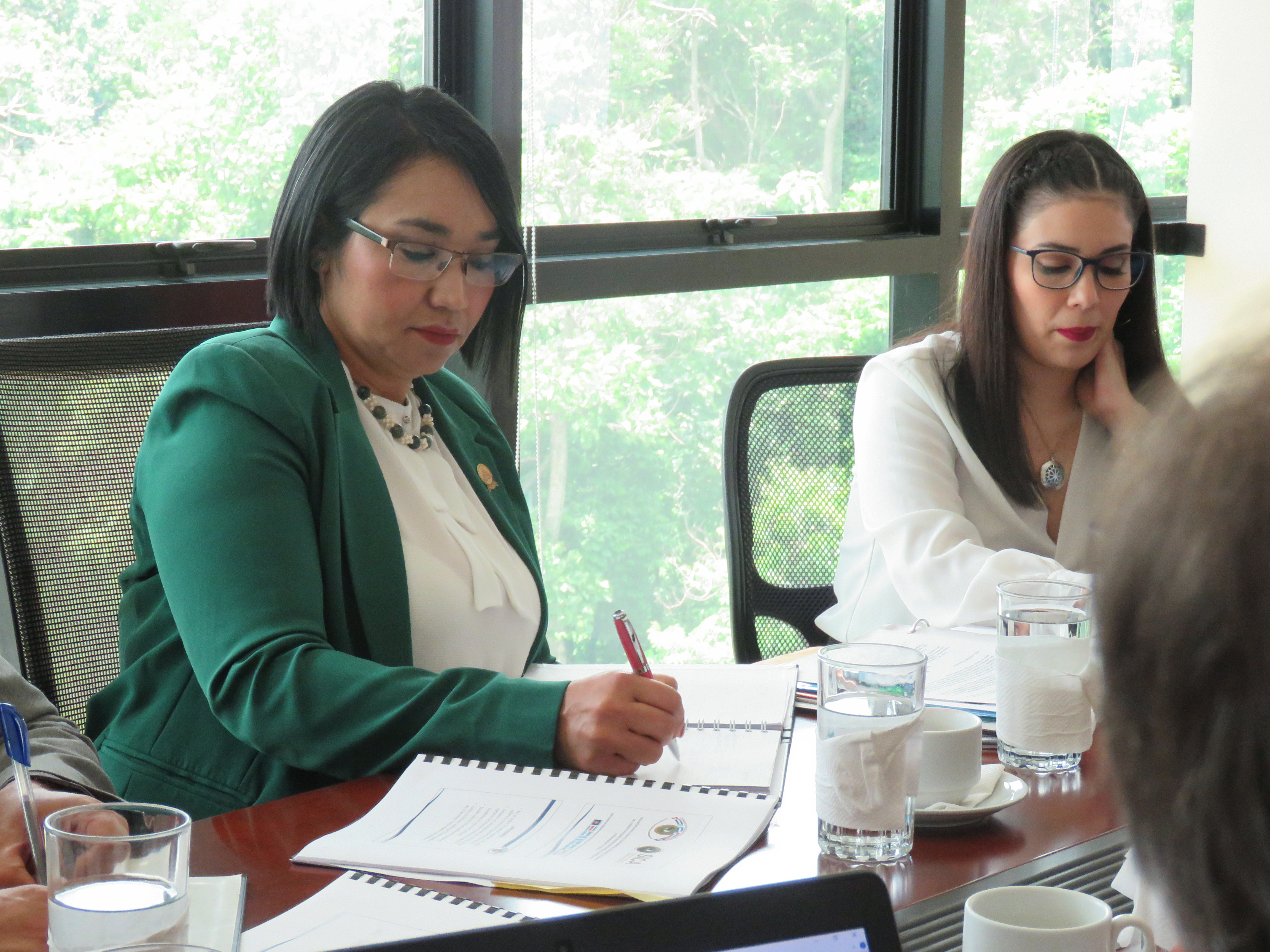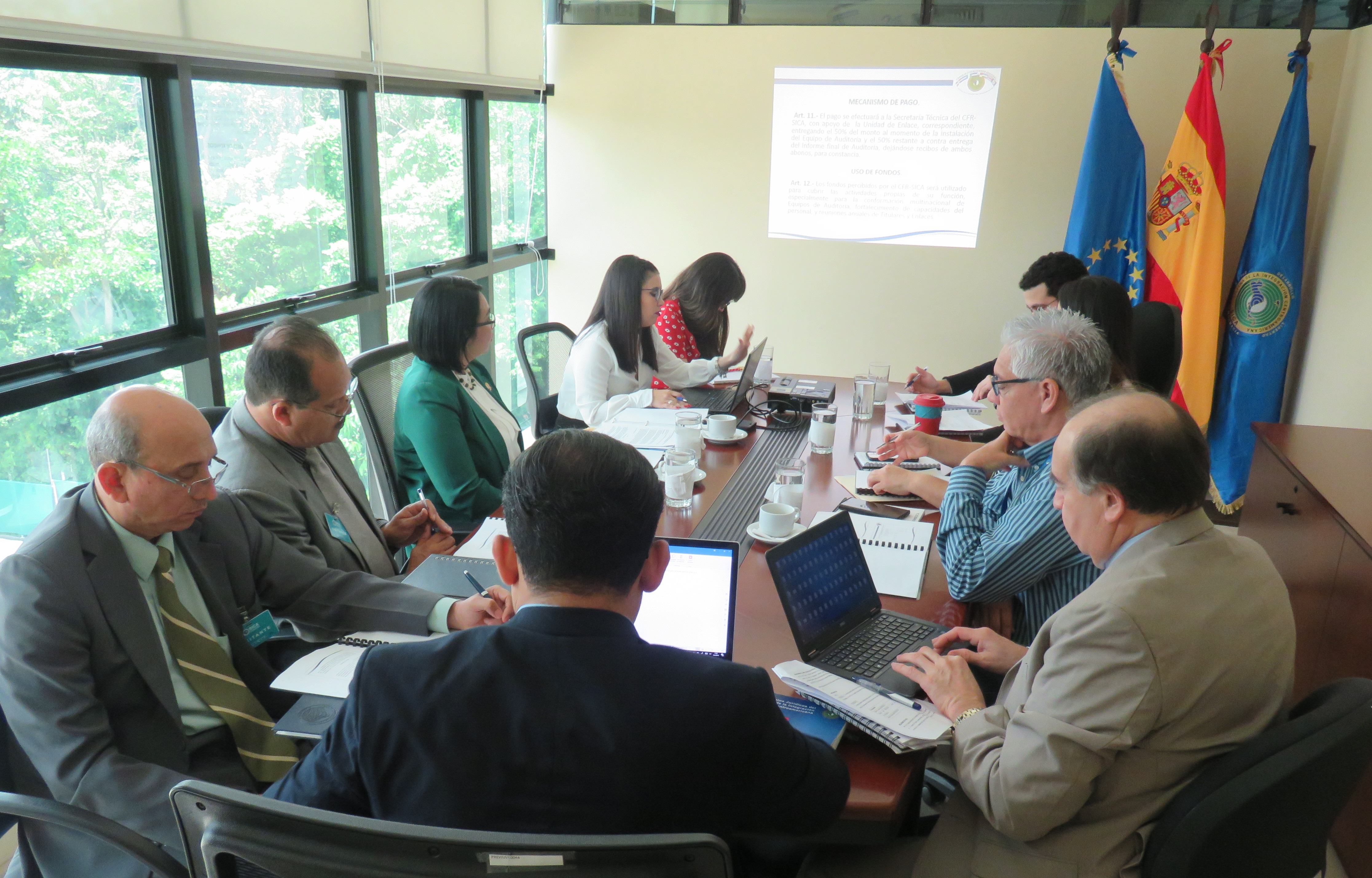 La Secretaria Técnica Rivas Landaverde fue acompañada por la Licda. Marcela Beatriz Iraheta Alfaro, quien expuso a los presentes una propuesta de robustecimiento del CFR-SICA. Acompañaron en la reunión el Lic. Pablo Antonio Saravia y el Lic. José Isidro Cruz, en su carácter de miembros del CFR-SICA, así como personal de la Dirección Jurídica del SICA.
