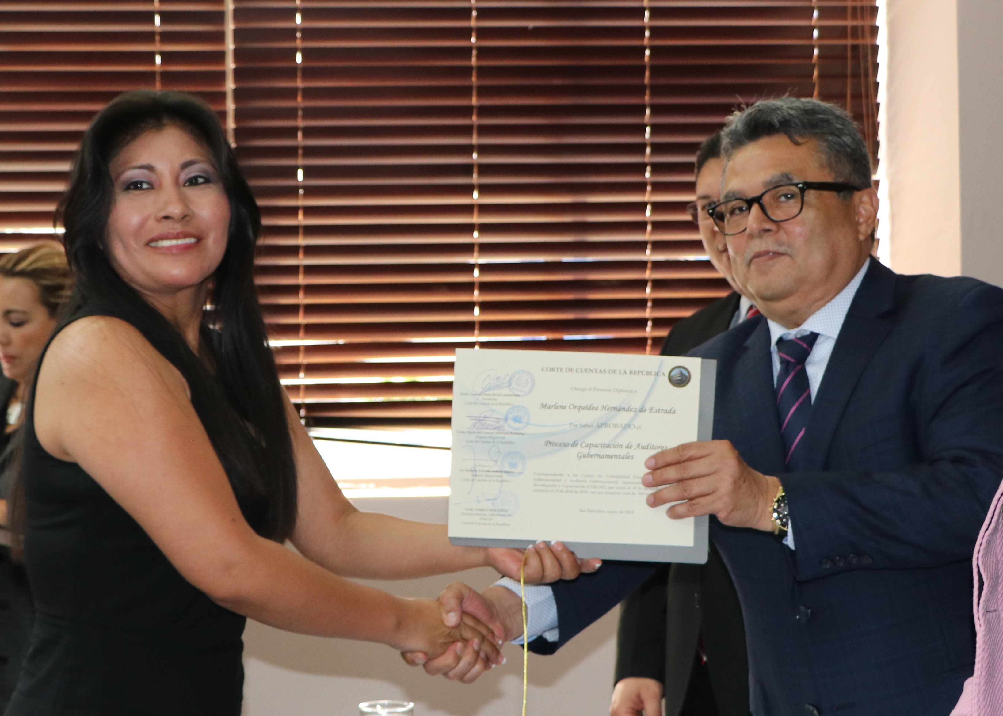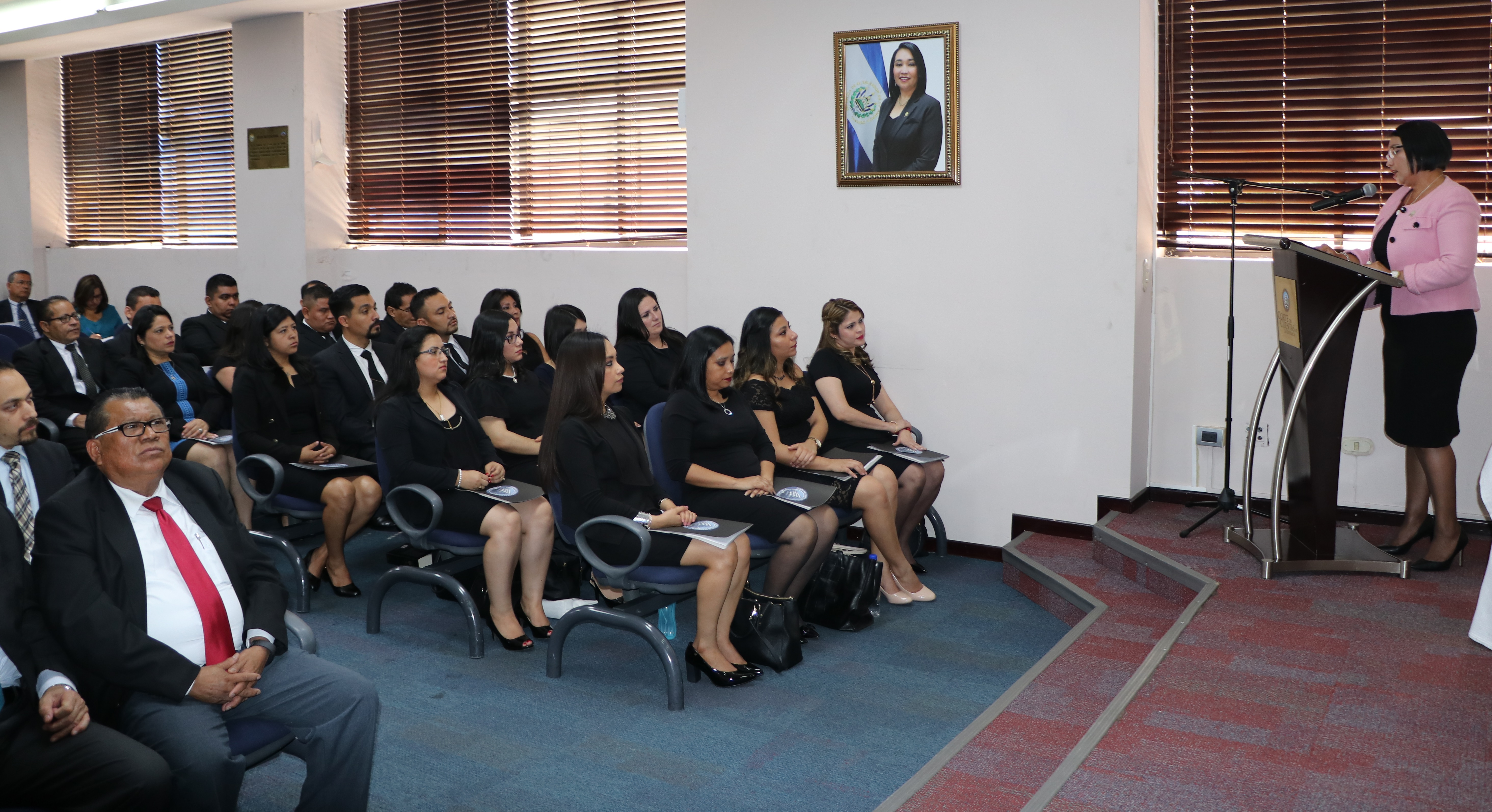 “Los ojos de los salvadoreños están puestos en el trabajo del auditor gubernamental, hoy más que nunca debe cumplir principios éticos, mantener cierto nivel de escepticismo profesional y ser totalmente independiente en el ejercicio de la profesión. Debe desarrollar su trabajo con el pensamiento y el corazón puesto en el beneficio de la población, debe auditar con lupa, a fin de que los recursos públicos lleguen al ciudadano común que más lo necesita. El reto es grande, luego pasarán a conformar los equipos de trabajo en las diferentes direcciones de auditoría de esta Corte, se llevan el compromiso de ser auditores ejemplares, esfuércense por hacer aportes de calidad que mejoren ese proceso sustantivo institucional, para ello han sido debidamente preparados,” dijo la Primera Magistrada.