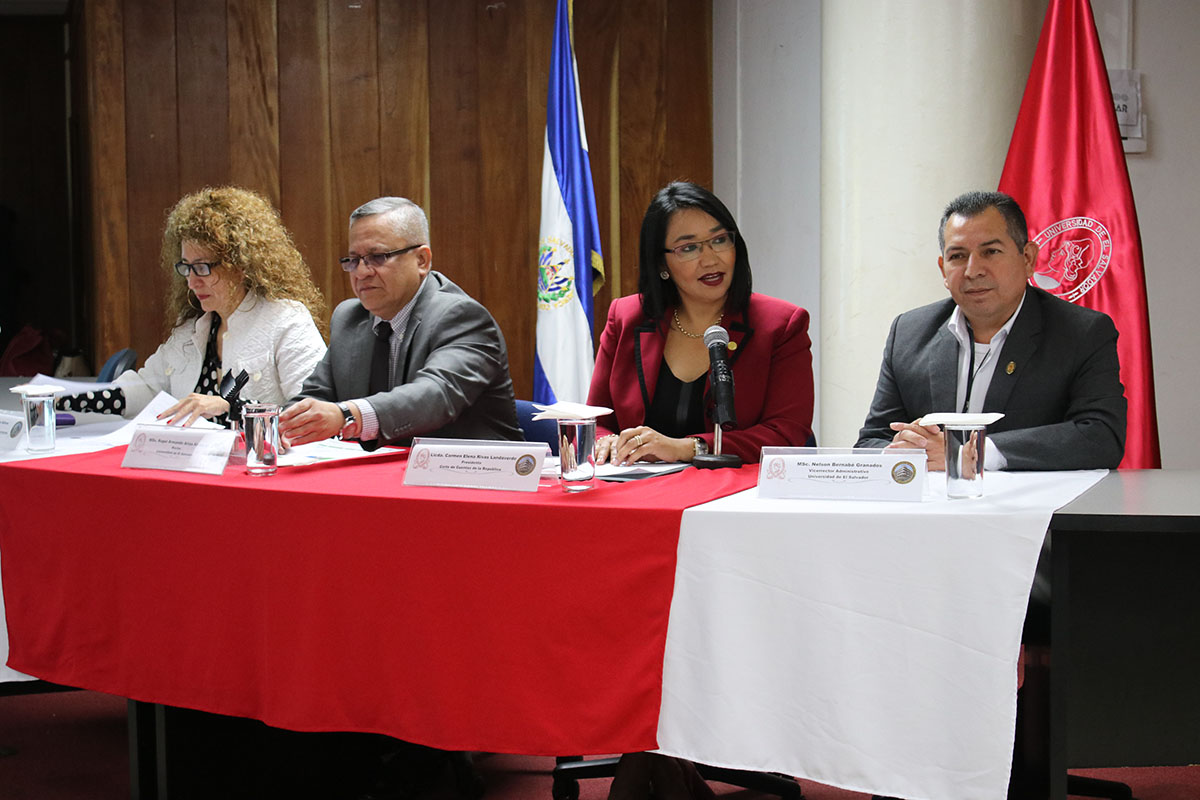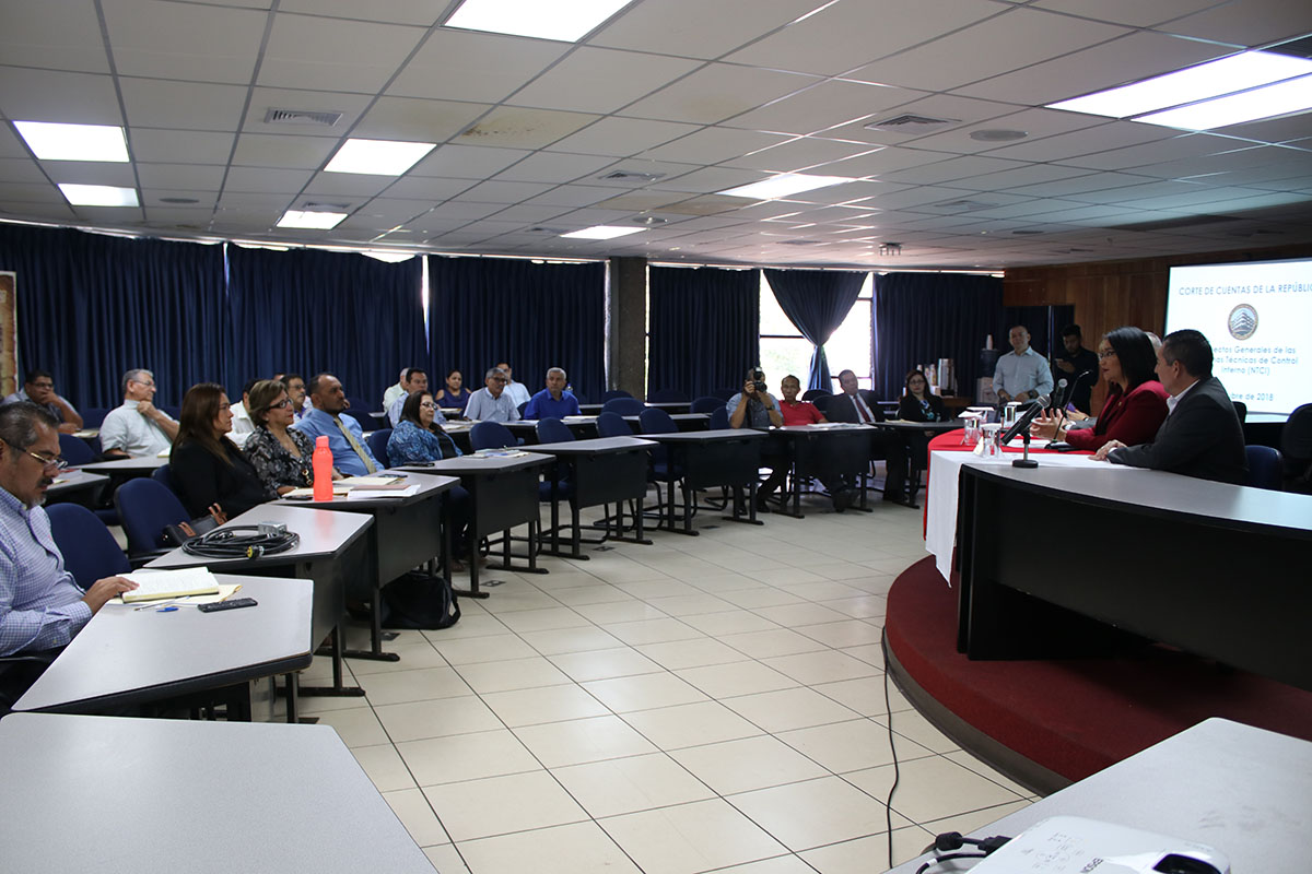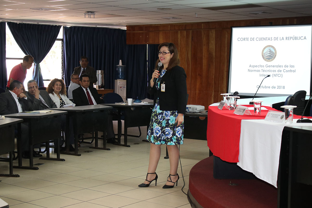 En evento desarrollado en la Sala de Sesiones de la Asamblea General Universitaria de la Universidad de El Salvador (UES), la Presidente de la Corte de Cuentas de la República, Licda. Carmen Elena Rivas Landaverde, inauguró capacitación sobre las Normas Técnicas de Control Interno (NTCI).